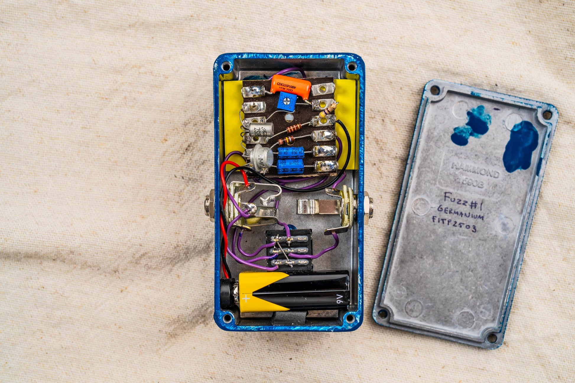 Fuzz#1は、伝統的なゲルマニウム・ファズフェイスの回路を現代に蘇らせたプレミアム・ペダルです。スウェーデン・ストックホルムの工房にて、一台ずつ丹念にハンドメイドされています。 基板を介さない「ポイント・トゥ・ポイント(ラグ板)」配線による徹底したハンドワイヤードに加え、筐体にはハンドペイントを採用。一台ごとに異なる表情を持つその姿は、まさに唯一無二の芸術品です。